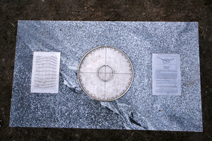 Pienessä kivielementissä on aurinkokello, joka toimii myös muulloin kuin puolenpäivän aikaan. Kello muodostuu kahdesta sisäkkäisestä metallirenkaasta. Ne muodostavat neljän kimmeltävän pisteen suoran, joka osoittaa Aurinkoon. Kun asettuu itse pisterivin jatkoksi, Aurinko on suoraan edessä. Tällöin kellonajan voi tarkistaa kellon kehältä ja taulukosta kellon vieressä.