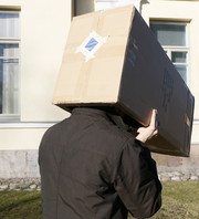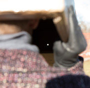 Leikkaa vielä yhteen laatikon pitkistä sivuista sopivan kokoinen aukko, josta pää mahtuu laatikon sisään. Tästä reiästä voi kurkistaa varjostimena toimivan laatikon sisään. Varo, ettei pää peitä taakseen Auringon kuvaa.