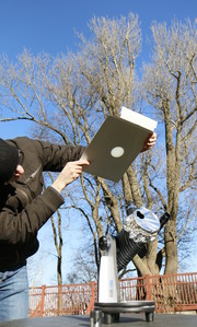 Laatikkoa käytetään kääntämällä selkä pimentyvää Aurinkoa kohti. Auringon kuva heijastuu valkealle kartongille, josta sitä voi turvallisesti katsella.