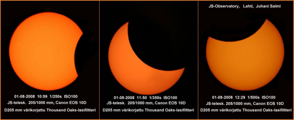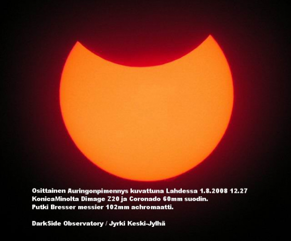 Vesa Vauhkosen ottama kuva osittaisesta auringonpimennyksestä 1.8.2008 |