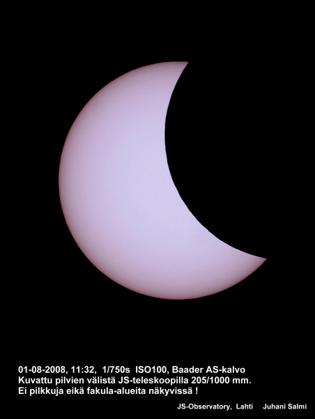 Laitteistona JS-teleskooppi, Baader AstroSolar. Kameratiedot: 1/750s. ISO 100 |