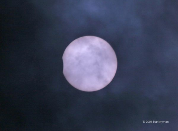 Mauno Laitisen kuva osittaisesta auringonpimennyksestä 1.8.2008 klo 12.58, Kilpisjärvi |