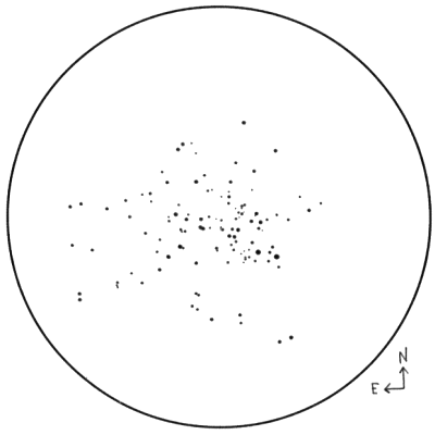 hyvinkin symmetrinen, kirkkaimpien tähtien ollessa noin 9 magnitudia.