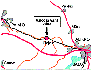 Saapuminen Turun suunnalta: Valtatie ykköstä Turusta 37 km Helsinkiin päin. Vajaa 1 km viitan, jossa lukee SAUVO (oikealle) jälkeen käännytään vasemmalle viitan HAJALA 5 mukaan. Ajetaan noin 4 km mutkaista soratietä aina rautatiesillan jälkeiseen T-risteykseen, josta käännytään oikealle ja ajetaan 300 metriä. Hajalan asemalle käännytään oikealle juuri ennen bussipysäkkiä.
