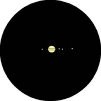 Jupiter on viides planeetta Auringosta lukien. Se kuuluu ns. kaasu- eli jättiläisplaneettoihin. Jupiter on aurinkokunnan suurin planeetta. Se on massaltaan 318 kertaa ja halkaisijaltaan yli 10 kertaa maapallon kokoinen. Sen etäisyys Auringosta on viisinkertainen Maahan verrattuna. Jupiterilla ei ole kiinteää pintaa. Planeetalla on mahdollisesti kivinen ydin, mutta suurin osa planeetasta on kaasua. Paljain silmin se näyttää kellertävältä ja on kirkas. Kaukoputkella planeetta näyttää selvästi litistyneeltä. Pinnalla näkyy tummia vaakasuuntaisia vöitä. Planeetan neljä suurinta kuuta näkyvät jo kiikarilla. |