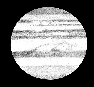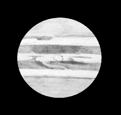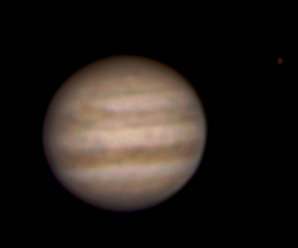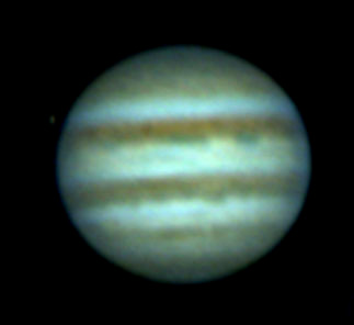 "Jälleen 'tylsä' puoli Jupiterista. Kuu on Europa. Seeing oli kohtuullinen, joten kuvaaminen oli mahdollista planeetan pienstä korkeudesta huolimatta."