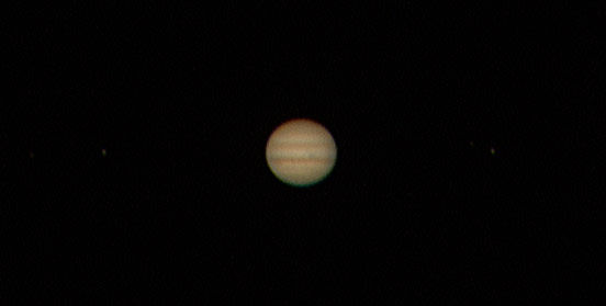 "Yllättävän hyvä tuli tämänöisestä Jupiterista vaikka matalalla onkin. Punainen pilkku näyttää aika vaatimattomalta. Jupiterin korkeus kuvanottohetkellä noin 14 astetta."