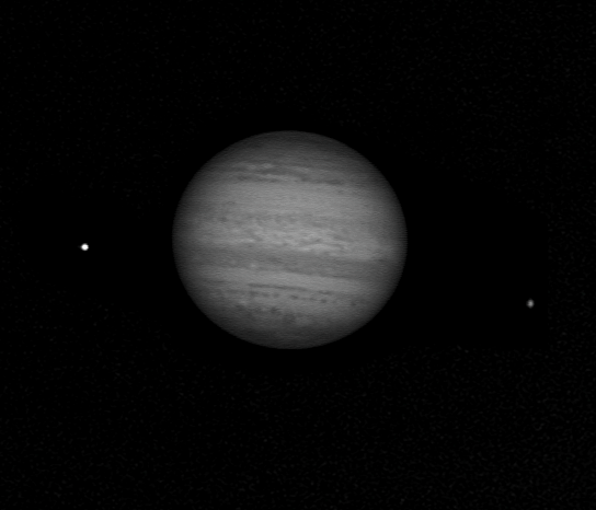 Lasse Ekblom, Nousiainen (60°37'32"N, 22°03'02"E) Klo 1.50, CM I = 198, CM II = 325, CM III = 163 "Ion ylikulku kuvattuna huonossa seeingissä." |
