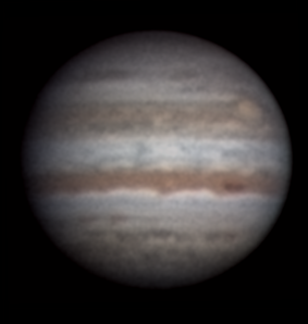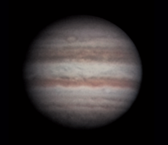Lasse Ekblom, Nousiainen (60°37'32"N, 22°03'02"E) "Sarja kuvia hiukan paremmassa seeingissä kuin 1.8. Yritin eri värimääritystä näihin kuviin." Klo 4.44, CM I = 239, CM II = 328, CM III = 256 |