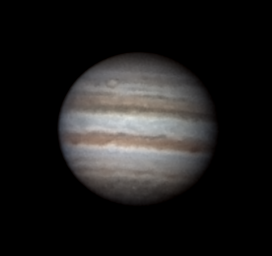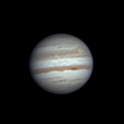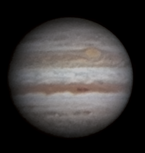 Tero Parkkonen, Joensuu, Utra Klo 2.24, CM I = 319, CM II = 279, CM III = 211 "Kannoin putken pihamaalle, jotta saan Jupiterin tähtäimeen. Seeing aika huono, lepattava ilmakehä + todella korkea ilmankosteus. Tästä syystä huomaamattani korjauslasi pääsi välittömästi kuvaussession alkuun huurtumaan, enkä tajunnut sitä ennenkuin oli myöhäistä. Myöskään läppäri ei jostain syystä akulla puskenut täyttä frameratea kameralla, tarkistin kyllä, ettei mitkään virransäästöt sitä olleet jarruttelemassa, mutta kun ei niin ei, jouduin ottamaan 7,5fps frameratella sitten. Pinoon otettu mukaan 80% kuvista." |