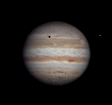 Lasse Ekblom, Nousiainen (60°37'32"N, 22°03'02"E) "Europan varjo liikkuu Jupiterin pinnalla. Kauden ensimmäinen kohtuullinen sää. " Klo 1.28, CM I = 204, CM II = 12, CM III = 309 |
