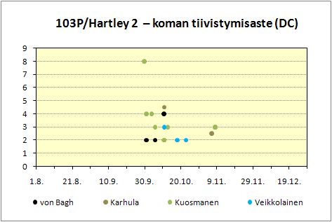 | DC | koman tiivistymisaste: 0 = tasainen, 9 = tähtimäinen ks. tiivistymisasteen määritelmät |