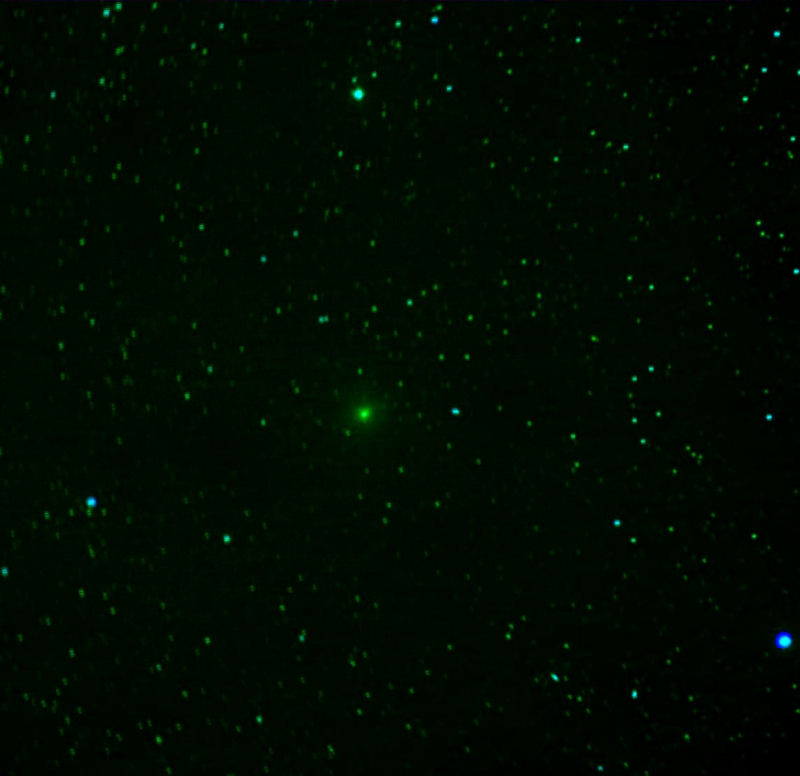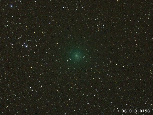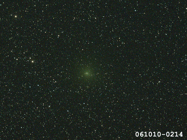 Jorma Mäntylä, Kangasala, Haapaniemi (61° 23' 59" N, 24° 00' 00"E) "Toinen erinomainen tähtiyö, mutta ei erottunut komeetta vieläkään paljain silmin. Etsintäputkella löytyi jälleen harmaa laikku, joka kameran kuvassa osoittautui vihreäksi komeetaksi." |