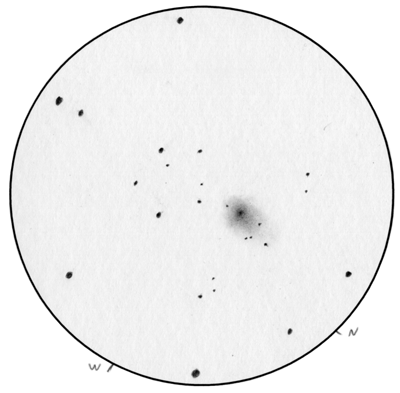 Jyri Lehtinen, Kirkkonummi, Komakallio (B65) "Komeetasta on näkyvissä hyvin pyöreä koma, joka tiivistyy merkittävästi kohti keskustaa. Ajoittain oli myös näkyvissä himmeä tähtimäinen ydin. Koma vaikutti olevan aavistuksen pitkulainen pohjois-etelä-suunnassa, joskaan tämä havainto ei ole varma. Havaittava koma ulottui komeetan molemmin puolin olleisiin himmeisiin tähtiin saakka. Taivas oli huomiotaherättävän vaalea havaintohetkellä." |