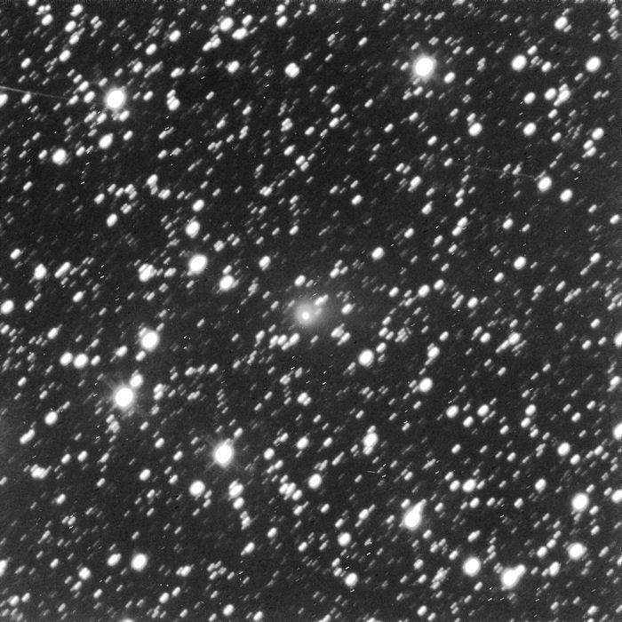 "Kuva on otettu kaukokäytöllä Australiassa Moorookissa sijaitsevalla GRAS 6 -kaukoputkella. Kentän koko alkuperäisessä kuvassa: on suunnilleen 23' x 23'. Tiivistymisaste on melko suuri. Kokonaiskirkkaus arviolta 12 magnitudia. Pyrstöä ei ole mielestäni näkyvissä, vaan koma on aika symmetrinen. Jos tarkasti katsoo, niin ehkä noin 1,5 kaariminuutin mittainen pyrstö voisi olla suuntaan 275 astetta. Kuvassa pohjoinen ylhäällä ja itä vasemmalla."
