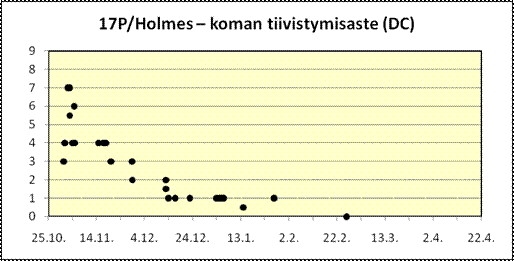 koman tiivistymisaste: 0 = tasainen, 9 = tähtimäinen