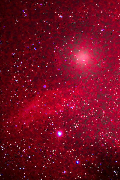 "Maaliskuun alkupuolella komeetta oli ohittamassa Kalifornia-sumua. Kuvista huomaa, miten komeetan koma on vähitellen laajentuessaan samalla myös menettänyt pintakirkkauttaan, eikä kirkasta "ydinpistettä" pysty myöskään enään erottamaan selvästi. Mittasin jälkimmäisestä kuvasta lähes pyöreältä vaikuttavan koman läpimitan. Kirkkausero on huomattava verrattua tammikuussa ottamiini kuviin."