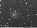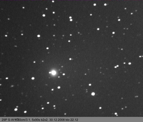 "Joulukuun puolivälin aikoihin komeetan ytimessä tapahtui jälleen jonkinlainen purkaus, joka kirkasti huomattavasti koman keskiosaa. Kuvassa kohteesta erottuukin lähinnä vain tämä kirkas ydinosa, jota ympäröi noin 1.5' läpimittainen selvemmin erottuva komahuntu. Ulompana on vielä erittäin heikosti erotettavissa noin 4' etäisyydelle ulottuvaa huntua aikaisemmasta komasta. Vieläköhän sekin kirkastuu jälleen tämän uuden purkauksen seurauksena ?"