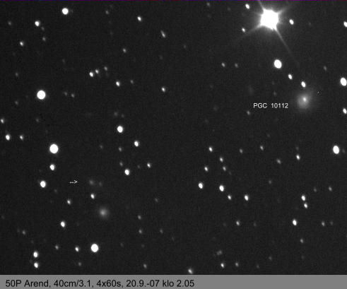 "Mitättömän pienikokoinen komeetta, joka oli kuitenkin helposti kuvattavissa Kolmion-Andromedan alueelta. Lyhyt pyrstö näkyy. Kohteen kokonaiskirkkaus on ilmeisesti noin 15 mag."
