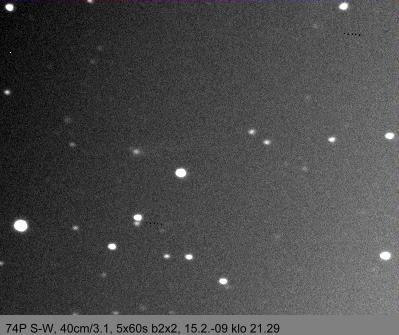 Klo 21.29, koma 0,4', pyrstö 3,5' PA 275°