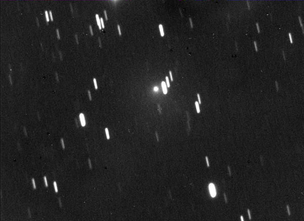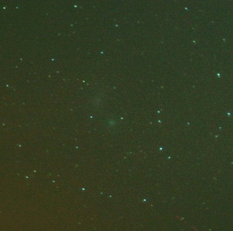 "Himmeä komeetta kuvattu. Se oli vain noin 1,5 astetta taivaan pohjoisnavasta, joka aiheutti vähän säätöä kaukoputken seurannan korjauksen kanssa.Komeetassa näkyy aavistus koman lisäkettä tai soikiomaisuutta. Tämä olisi suunilleen auringon suuntaan. En tiedä, voisiko kyseessä olla vastapyrstö.