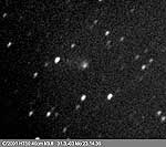 "Onnistuin kuvaamaan komeetan CCD:lläni. Kohde vain sattui olemaan hyvin hollilla Yksisarvisen tähtikuviossa ja niinpä Sky Mapin yksityiskohtaista tähtikarttaa tutkimalla suuntasin kaukoputkeni täsmälleen siihen kohtaan taivasta, missä komeetan piti olla. Silmäni eivät olleet ehtineet adaptoitua pimeään kovin hyvin, joten en voi varmuudella sanoa erottaneeni sitä visuaalisesti. Jo lyhyelläkin valotuksella se kuitenkin näkyi selvästi komeettamaisena tietokoneen kuvaruudulla. Ensimmäinen kuva on otettu klo 22.40.05 (valotuksen keskikohta). Koman läpimitta on arviolta hädin tuskin 1', mutta lisäksi näkyy aavistuksen verran vasemmalle kaartuvaa pyrstöntynkää. Toisen kuvan kohdalla koin hetkellisen järkytyksen; ei kai komeetan ydin ollut paraikaa jakaantumassa osiin ! (kuvausaika klo 23.19.35). Asia selvisi kuitenkin pian kuvien päällekkäinblinkkauksella; komeetta olikin vain vaeltamassa erään tähtiparin välistä."