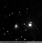Klo 02.39, mag 10,9, koma 0,8' Klo 02.47 havaintoväline: M400/2000, f/3.8 focal reducer CCD: Starlight Express HX 516, 3 x 2 min