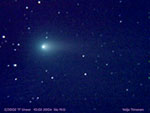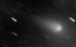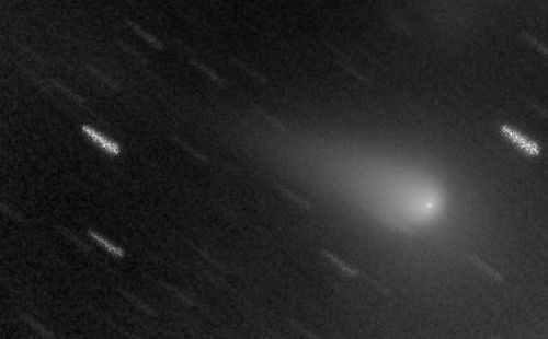 "Kuvasimme Nyrölässäkin tuota komeettaa viime yönä pakkasen paukkeessa. Kuun valaisemalta taivaalta ei saanut kovin tyylikästä kuvaa, mutta kelvollista astrometriaa kylläkin.Kuvassa näkyy pyrstöä noin viitisen kaariminuuttia. Kuva on käsitelty DDP-algoritmilla jotta kirkas ydin ja himmeä pyrstö näkyvät yhtäaikaa. Ja pari paikkahavaintoa (kirkkaus on ytimen kirkkaus): "