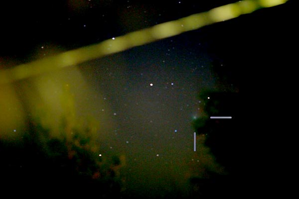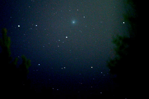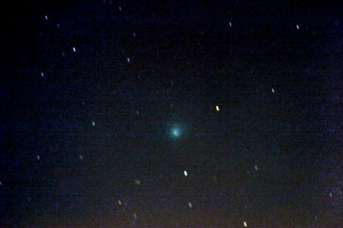 "Komeetta havaittu Etelä-Suomen Kosmologisen Seuran tontilla. Kiikareissa nippanappa riitti epätarkennusvara. Kuvasta leikattu alue 16x12°"