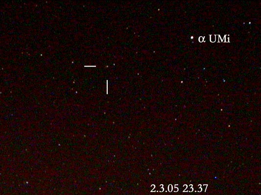 "Komeetta ei enää erottunut paljain silmin, mutta sain sen kuvaan digikameralla. Komeetta on niin lähellä Pohjantähteä, että kuvaa voi valottaa ilman seurantaa. Se erottuu kuvissa noin 6 - 6,5 magnitudin tähtenä, jolla näkyy vielä hieman pyrstöä."