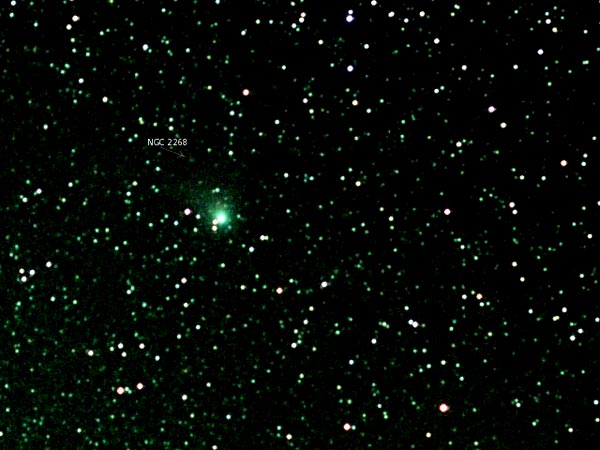 "Visuaalihavaintoa en tällä kertaa enää yrittänyt, mutta komeetan sijainti lähellä taivaannapaa houkutti ottamaan siitä vielä kuvasarjan, kun seurannan puutekaan ei ollut ongelma komeetan taivaannavan lähellä olon johdosta. Koman koko ja pyrstö on arvioitu otoksesta, en tiedä miten vertailukelpoisia visuaalihavaintojen kanssa ovat. Pyrstöäkin tarttui vielä useammasta kuvasta pinottuun valotukseen siedettävästi. Kuriositeettina mainittakoon komeetan lähellä näkyvä galaksi NGC 2268, joka on ilmeisesti noin 8 biljonaa kertaa kaukaisempi kohde kuin komeetta kuvan ottohetkellä."
