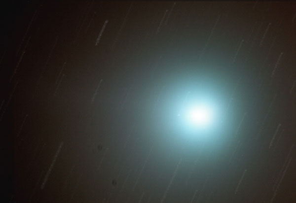 "Tarkoituksena oli yrittää tähdenpeittohavaintoa, mutta juuri satanut lumi teki muutoinkin pahasta valosaastetilanteesta mahdottoman ja jätimme peittohavainnon yrityksen asteelle. Kun putki oli kuitenkin juuri kollimoitu ja jo jäähtynyt päätimme vihdoin tehdä komeetasta havainnon. Aikaisemminhan se on tullut jo nähtyä. Kirkkaus- yms. määrittelyt olisivat varmaankin olleet vähemmän valon keskellä tarkempia. Nyt esim. pyrstöstä ei näkynyt jälkeäkään. Vain heikko V-muoto koman ulkoreunassa."