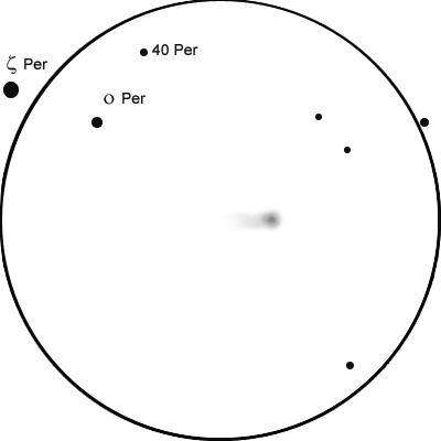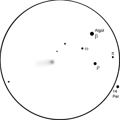 "Komeetan koma näyttää kasvavan vaikka komeetta onkin himmenemässä. Ehkä pidempään jatkunut lämpötilan kohoaminen on pehmentänyt komeettaa niin, että siitä irtoaa enemmän materiaalia. Paljain silmin komeetta on havaittavissa sitä paremmin mitä ylemmäs se taivaankannella kipuaa. Vertailutähti oli SAO 38609"