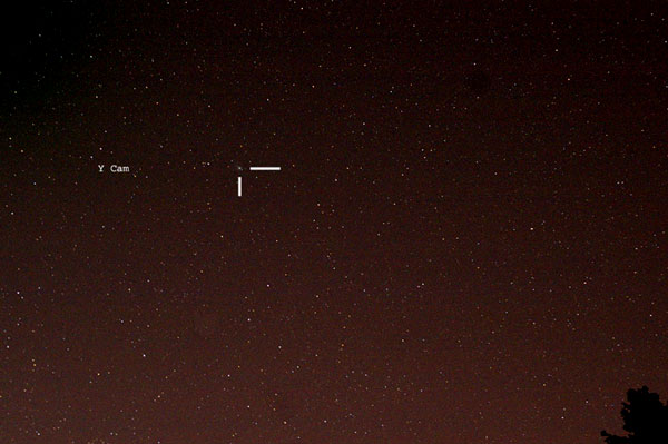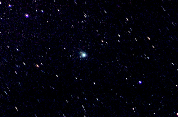 "Komeetta erottui vajaan puolen Kuun häiritessä niukin naukin paljain silmin himmeätähtisellä Kassiopeian ja Kirahvin rajamailla. Pyrstötähti tarttui yllättävän helposti testaamani kameran kennolle"