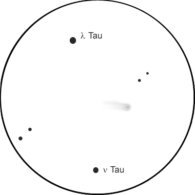 "Machholz näkyi myös helposti paljain silmin. Se näkyi mukavasti isohkona sumupallona Nu, Lambda ja Ksi Taurin muodostamassa kolmiossa. Ohut kaasupyrstö suuntaan 70° noin yksi aste. Kaasupyrstössä näkyy myös heikosta haaroja. Pölypyrstöstä aavistusta suuntaan 205°"