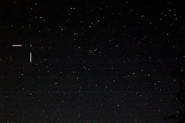"Kaksoisvalotus samaan ruutuun 20 min välein tuo komeetan liikkeen esiin. Teleobjektiivillä ei valoisuuden takia saa pyrstöä esille."