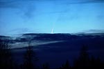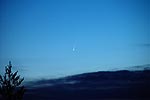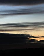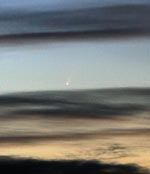 Puolisen tuntia hämärtyvää pilvistä taivasta tarkkailtuani palasin pettyneenä ja kyllästyneenä autolle ja lähdin ajamaan kotia kohden. Jouduttuani pysähtymään risteyksessä ja jo hiukan lämmettyäni huomasin luoteistaivaalla pienen sinertävän läikän. Ei muuta kuin ajamaan Porvoon pohjoispuolella oleville Kiialan pelloille aukealle paikalle ja kiikari käteen ja ulos autosta.