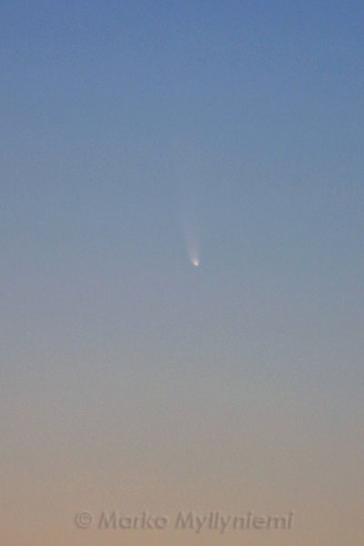 "Viimeinen tilaisuus bongata tämä kirkkain komeetta 30 vuoteen. Myöskin parhaat näkymät oli tarjolla tänään kun pilvet pysyivät kohteliaasti loitolla. Kirkkaus samaa luokkaa Venuksen kanssa. Kaukoputkella katsottaessa todella hienon näköinen. Myös paljain silmin näkyi pyrstöä vaikka taivas olikin niin vaalea. Olisipa tämä näkynyt yötaivaalla niinkuin Hale-Bopp ja Hyakutake."