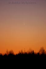 "Onnistuin bongaamaan komeetan iltapäivällä Lahden ja Hollolan väliltä autosta käsin. Komeetta näkyi tuolloin hiukan horisontin yläpuolella kirkas Venus seuranaan. Komeetta oli hieman Venusta himmeämpi."