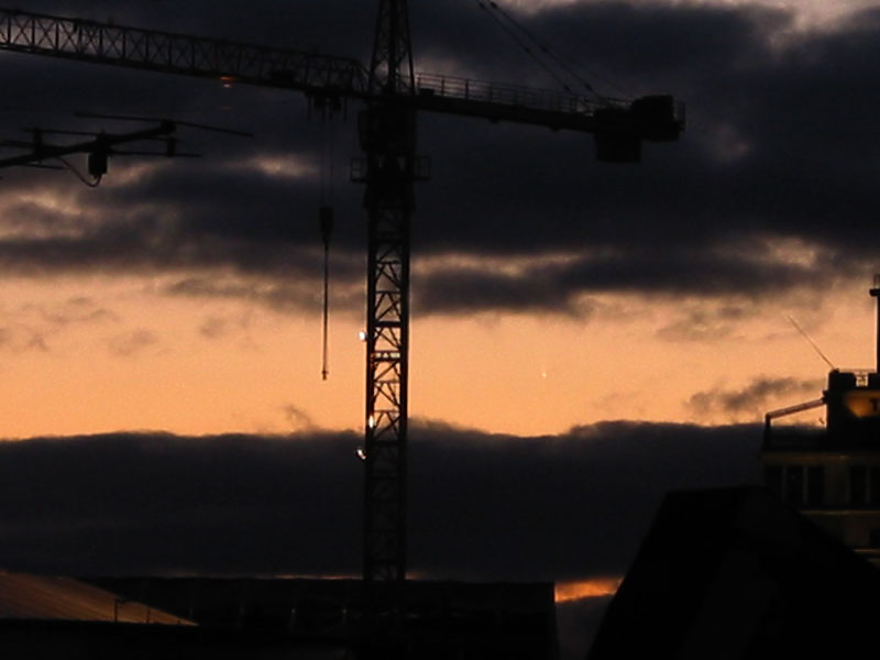 "Tänäänkään ei säät täysin suosineet Helsingin keskustaa. Vaikka taivas oli muuten lähes selkeä, juuri komeetan suunnalla oli pilviä. Komeetta tuli kyllä nähtyä jälkeen pilvistä huolimatta. Mutta jouduin edelleen tyytymään melko valoisaan taivaaseen. Ekan kerran komeetta löytyi klo 15.50, sen jälkeen see loisiti vielä pilviraosta klo 16.20 tienoilla. Sain kohteen tarttumaan kamerallekin. Komeetta ja pyrstö näkyivät paljain silminkin. Odotin vielä klo 17:ään, jotta pilvet laskeutuisivat alemmaksi, mutta tuon klo 16.20-30 jälkeen ei kohteesta eikä sen pyrstöstäkään enää näkynyt mitään.