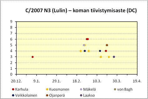 | DC | koman tiivistymisaste: 0 = tasainen, 9 = tähtimäinen ks. tiivistymisasteen määritelmät |