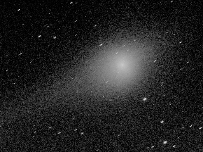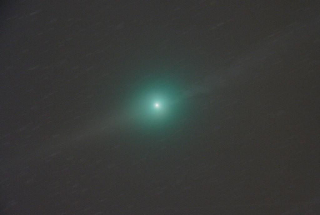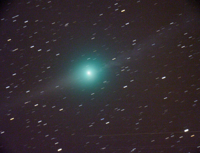 Juha-Matti Penttilä, Halsua "Tällä kertaa käytin PHD guiding -ohjelmaa komeetan seuraamiseen, jolloin tähdistä tulee viiruja. Kuvassa yksittäinen valotus." |