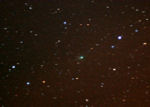 Markku Nissinen, Mayhill, New Mexico, USA (H06) "Kuva on otettu kaukokäytöllä New Mexicossa Mayhillissä sijaitsevalla GRAS 14 -kaukoputkella. Kuvakenttä on 155,8' x 233,7'. Kuvaa on hieman rajattu." Klo 8.03-17 UT, koma 20', pyrstöt > 25' PA 100°, 19' PA 230° "Kuva on otettu kaukokäytöllä New Mexicossa Mayhillissä sijaitsevalla GRAS 3 -kaukoputkella. Kuvakenttä 44,2' x 58,7'. Kuvaa on hieman rajattu." |