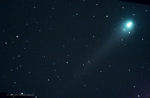 Veli-Pekka Hentunen, Tuomo Salmi, Harri Vilokki ja Esa Heikkinen, "Havaintotiimimme kokoontui eilen illalla Häkämäelle ja saimme komeetan kuvaan jo heti alkuillasta. Komeetassa näkyy oikealle sivulle päin kaasusuihku, joka kääntyy hieman kauempana alaspäin. Komeetta oli alhaalla ja taivas oli melko utuinen ja ilma kostea kuvaushetkellä. Kenttä 15' x 23' " |