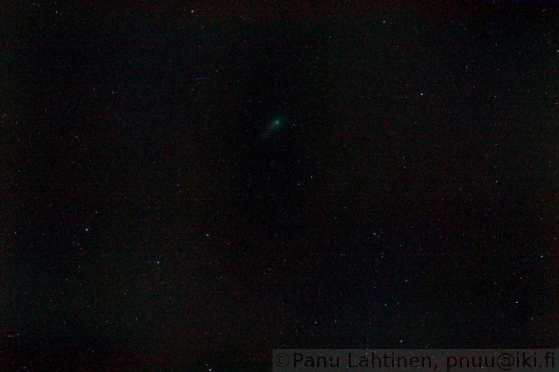 Arto Oksanen, Muurame "Kuva yhdistelmä kahdesta valotuksesta ilman seurantaa. Kuvaa on rajattu. Komeetta ei näkynyt paljain silmin, mutta lähellä olleet 5 mag tähdet kyllä erottuivat selvästi. Kiikarilla utumainen pallo." |