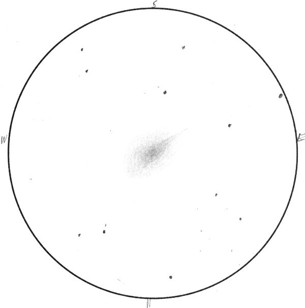 Toni Veikkolainen, Järvenpää, Kinnari "Ei erottunut paljain silmin, mutta löytyi etsimen kentästä helposti silkalla hakuammunnalla. Koman keskiosa kirkas reunoihin nähden, mutta itse ydintä ei näkynyt. Kapea pyrstö erottui nopealla lakaisulla Koma selvästi venynyt pyrstön suunnassa. Kuten monilla saman taivaanseudun galakseillakin, hankala sanoa mihin asti reunat ulottuivat." |