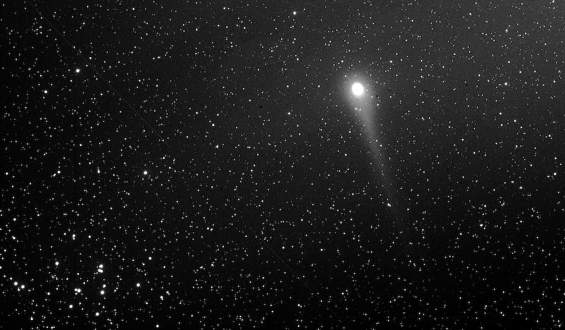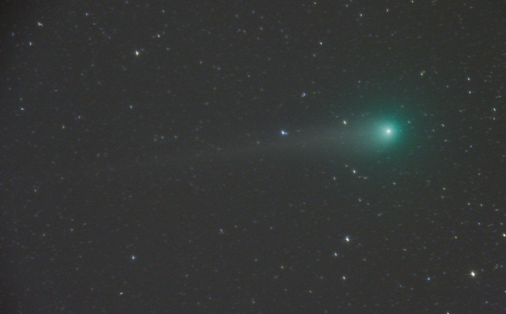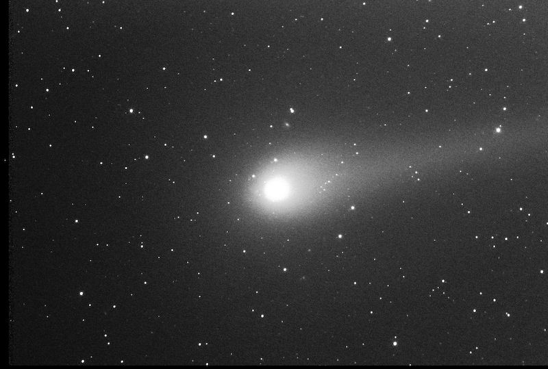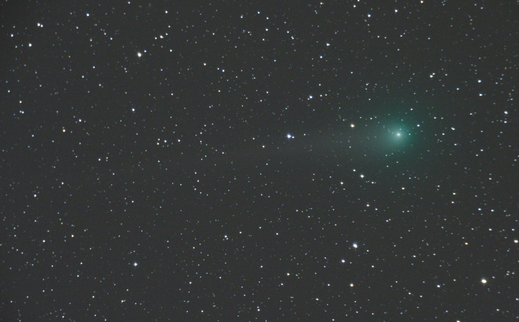 Urpo Hietala, Polvijärvi "Illalla etsin kiikarilla komeetta, mutta eipä näkynyt. Sitten kokeilin haravoida taivasta kuvaamalla 100 mm:n polttovälin linssillä ja viimein komeetta löytyi kuviin. Kohdistin komeetan näytön keskelle ja zoomasin linssin täyteenmittaan ja kuvasin täydenkuun loisteessa muutamia kuvia." |