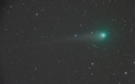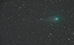 Timo Kantola, Pieksämäki "Yllä on säädetty vähän väribalanssia ja rajattu ja kuumat pikselit poistettu. Alemmassa yritin tuoda komeettaa paremmin esiin kahdesta kuvasta. Tähtien häivytys ei aivan täydellisesti onnistunut, ja siksi tähdet on vähän epäsymmetrisiä." |
