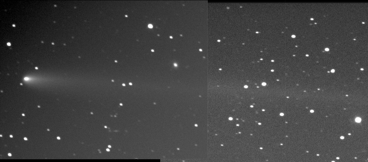 Veijo Kallio, Lumijoki (A70) "Seuraavassa peilitelen läpi otetussa kuvassa pyrstö näyttäisi ulottuvan heikkona jopa 40' etäisyydelle (kuvakenttä vaakasuunnassa on noin 1 aste 3' )." Ks. myös http://kotisivu.dnainternet.net/jblkdjgk/C2007Q3SidingSpring.htm |