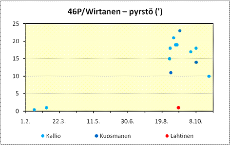 havaintoväline: N paljas silmä, B kiikarit, M peiliputki